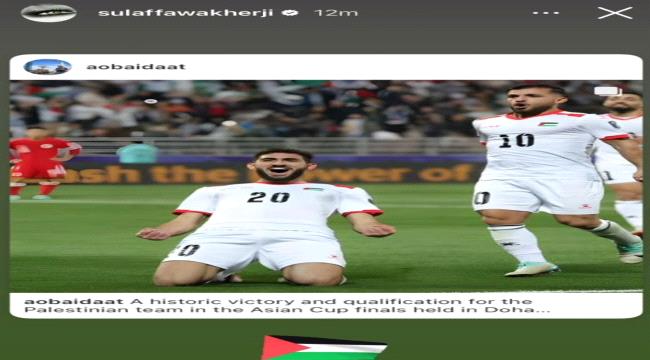 بدورها شاركت سلاف فواخرجي عبر ستوري حسابها على إنستغرام صورة لنتيجة المباراة واحتفال الجماهير مع عبارة : "نسور قاسيون تحلق في سماء الدوحة"، بالإضافة إلى صورة أخرى لفرحة اللاعبين الفلسطينيين بالفوز والتأهل.