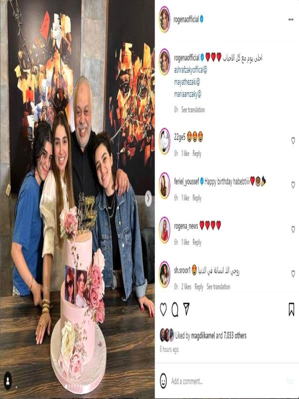نشرت الفنانة روجينا عبر حسابها الخاص في "إنستغرام" صورة جمعتها بزوجها الدكتور أشرف زكي وابنتيهما، أثناء احتفالهم بعيد ميلادها، وهي المرة الثانية التي تحتفل فيها روجينا بعيد ميلادها، حيث نشرت من قبل فيديو لاحتفالها بهذه المناسبة من الأراضي المقدسة أثناء أدائها العمرة.