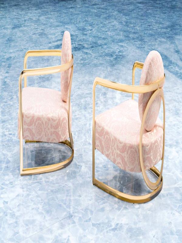 دخولك إلى قصر Palazzo Versace ينقلك تماماً إلى أسلوب الحياة المميّز لدار Versace. تم تقسيم الغرف بشكل منظّم إلى مناطق للمعيشة وتناول الطعام والنوم، وتزيّنها كلها قطعٌ من مجموعة Versace Home 2024. يمتد هذا الطراز إلى الفناء المركزي حيث تم إنشاء منزل زجاجي أرضيّتُه من السيراميك والأحجار الكريمة برسوم Versace. تركّز مجموعة الأثاث، التي تنتجها وتوزعها مجموعة Luxury Living Group، على رموز التّصميم المميزة لفيرساتشي. والآن تمّ تصميمُ وتطوير الرموز المميزة للدار، وهي Medusa وBarocco وGreca، داخل استوديوهات Palazzo Versace، وشوهد العديد منها لأول مرة في عروض الأزياء التي تُقام في الفناء المركزي لقصر Palazzo، يتم عرضها هنا عبر الأثاث والإضاءة والمنسوجات والكثير غير ذلك. يتميز طراز Medusa ’95 وGreca بالكراسي المستديرة والأرائك العميقة والواسعة المصنوعة إما من الجلد أو نسيج الشانيل، والتي تتميز بزخارف الباروك. نرى زخارف الـ Barocco في العديد من التّصاميم، بما في ذلك أدوات المائدة من مجموعة Rosenthal meets Versace. تتم معالجة المعدن المصقول باللون الذهبي الذي يميز Versace ليكون مرناً كما في ظهور وأذرع الكراسي، أو قوياً ومتيناً مثل حواف طاولات تقديم القهوة. القطعة المميزة في المجموعة هي أريكة Medusa ’95، وهو تصميم ينتمي إلى مجموعة Versace بشكل جليّ بحجمها الكبير والفخم والفاخر وبالراحة التي تقدّمها لك بأسلوب جذاب. تشبه الأريكة سريراً كبيراً، وتمنحك مساحة شاسعة من الاسترخاء، وتتميّز بتفاصيل جلديّة فاخرة ووسائد استلقاء من قماش الشانيل مزينة بزخارف Barocco، وتأتي بخيارات متنوعة عدة من الجلود التي تناسب الأماكن الداخلية أو الخارجية.