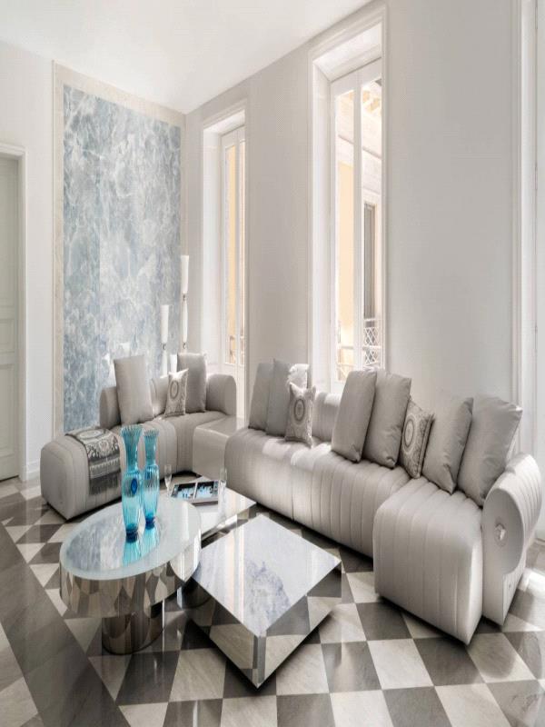 تُعدّ قطع الأثاث المنحوتة والخطوط المحدّدة بشكل واضح من السمات المميزة للمجموعة الأيقونية. تحتوي الأريكة المقسّمة المميزة على ثلاثة وأربعة مقاعد وتأتي بشكل خطّي أو منحنٍ. وهي متوافرة بالأبيض والأسود. يتم تعليق مساند الأذرع تقريباً على الهيكل، كما تتم إضافة ملحق داعم معدني ذهبي لامع إلى قاعدة المقعد. مجموعة من قطع الأثاث تشتمل على طاولة بجانب السرير، وخزانة ذات أدراج، وخزانة منخفضة، وخزانة بوفيه، وخزانة طويلة، ويتميز كل منها بشعار ثلاثي الأبعاد. تتكون طاولات تقديم القهوة المستديرة المميزة من مجموعة ثلاثية من الطاولات ذات الأحجام المختلفة التي ترتبط ببعضها البعض، وهي مصنوعة من الكروم اللامع أو الذهب اللامع مع أسطح طاولات سوداء اللون. وهي متوافرة أيضاً في إصدار محدود وحصري، يتميز بطبقة علوية من الخزف مع زخرفات كرقعة الشطرنج أو طاولة لعبة النرد كقطعة أساسيّة تمثّل نمط الحياة الفاخرة