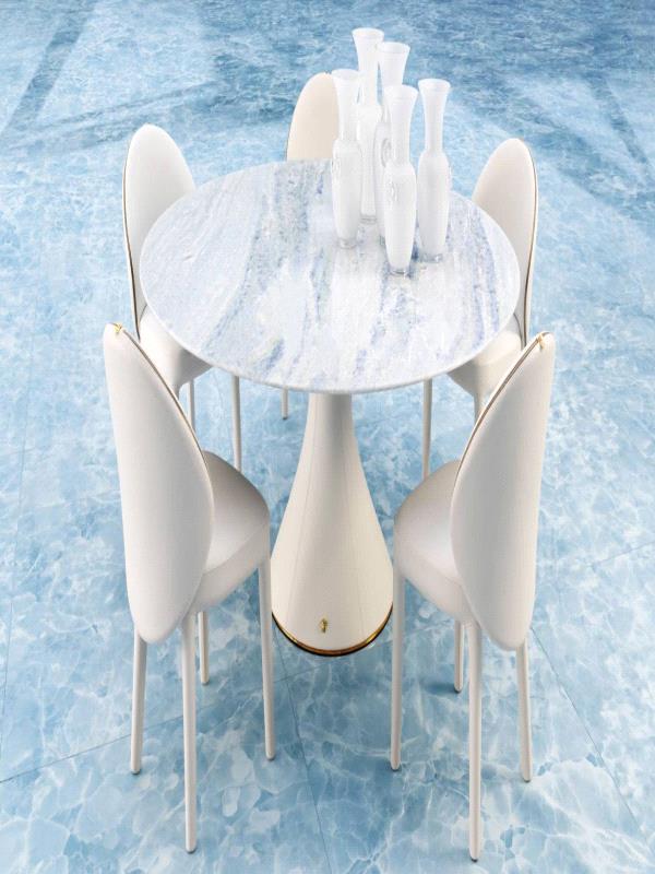 تتميز طاولة الطعام La Medusa بهيكل معدني داعم وهي متوافرة بسطح رخامي ناعم بظلال من اللون الأسود أو الأبيض وأرجل متباينة من الكروم اللامع أو الذهب اللامع، بالإضافة إلى اللون الأسود. تتميز خزانة La Medusa Deco المنخفضة بجوانب مشطوفة مع هيكل خشبي مطلي وسطح متوافر بأنواع مختلفة من الرخام، بما في ذلك Calacatta Gold وCalcite Blue وMarquina Nero وValentine Gray. تم صنع سجّادتي ميدوسا من القماش مع ظلال بألوان فاتحة. وتتميز بشعار ميدوسا الذي يتموضع في الزوايا.