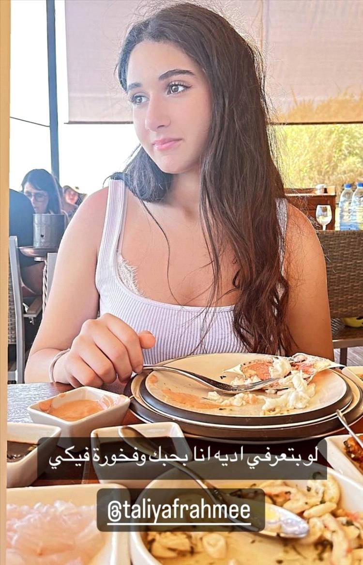 ولفتت تاليا الأنظار بجمالها الطبيعي وخجلها وبراءة ملامحها، وأكدت التعليقات أنها باتت نسخة عن والدتها لناحية الشكل والحركات، وأثنوا على عفويتها وخجلها اللذين تظهر بهما في كل الصور.