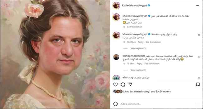 وعلق الصاوي على الصورة قائلاً: "هذا ما جاد به الذكاء الاصطناعي حين تصورني سيدة"، ليضيف ساخراً بقوله: "ست قفيلة وش".