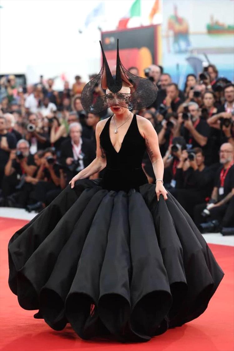كان مظهر الليدي غاغا مذهلاً بفستان من "ديور هوت كوتور"، شكّل مثالاً رائعاً للأزياء الراقية، خصوصاً من ناحية قصّته وضخامته بحيث بدا ثوباً ضخماً وخفيفاً في الوقت نفسه. تباين اللون الأسود مع التفاصيل المعمارية الجريئة، مما جعله قطعة بارزة على السجادة الحمراء. لم يكن فستان الليدي غاغا من "ديور" مجرد بيان للأزياء، بل كان قطعة فنية مميزة.