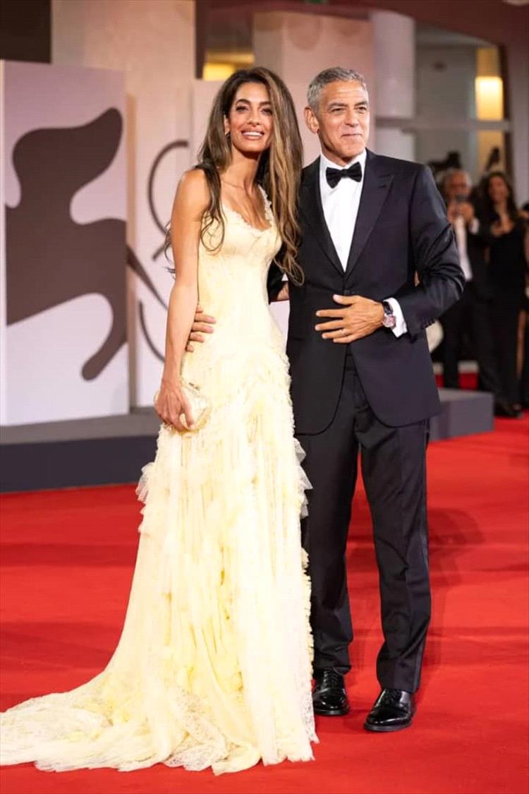 اختارت أمل كلوني تصميماً مذهلاً باللون الأصفر من "أتيليه فيرساتشي" Atelier Versace أضاف لمسة من الألوان النابضة بالحياة إلى المهرجان. كان الفستان مزيّناً بكشكشة درامية وصدرية ملائمة تنساب إلى تنورة بطول الأرض، تنضح بالأناقة والمرح. استُكمل اللون الأصفر الغني بلمسات معدنية دقيقة، مما جعله قطعة بارزة بين عروض المساء. جعل التصميم المتقن لفستان Atelier Versace والقماش الفاخر منه أحد أغلى الفساتين في المهرجان، مما يعكس أسلوب كلوني الذي لا تشوبه شائبة وكذلك خبرة المصمّم.
