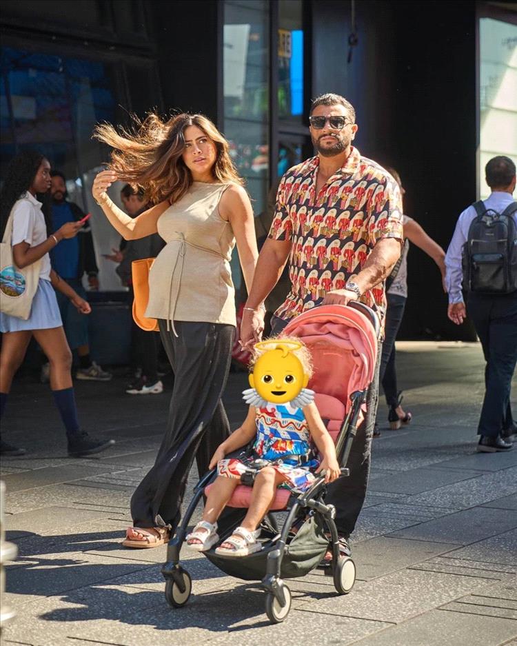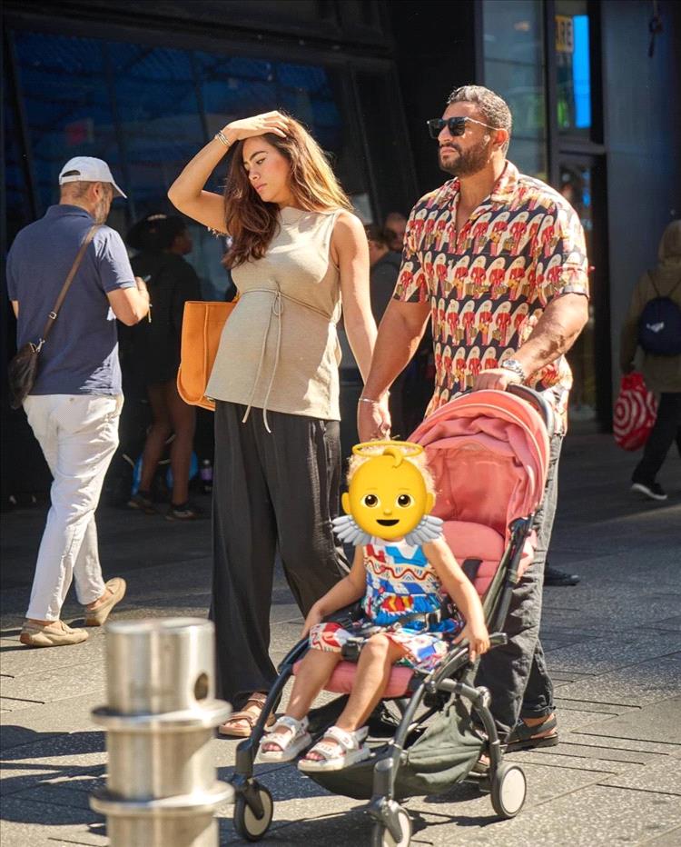 وظهرت هاجر في الصور وهي تسير جنب زوجها الذي يدفع عربة أطفال تجلس فيها ابنتهما الأولى، وقد أخفت هاجر وجه الطفلة بـ"إيموشن"، وبدا بطنها منتفخاً من الحمل، وعلّقت على الصور بالقول: "قلوبنا ممتلئة، عائلتنا تكبر".