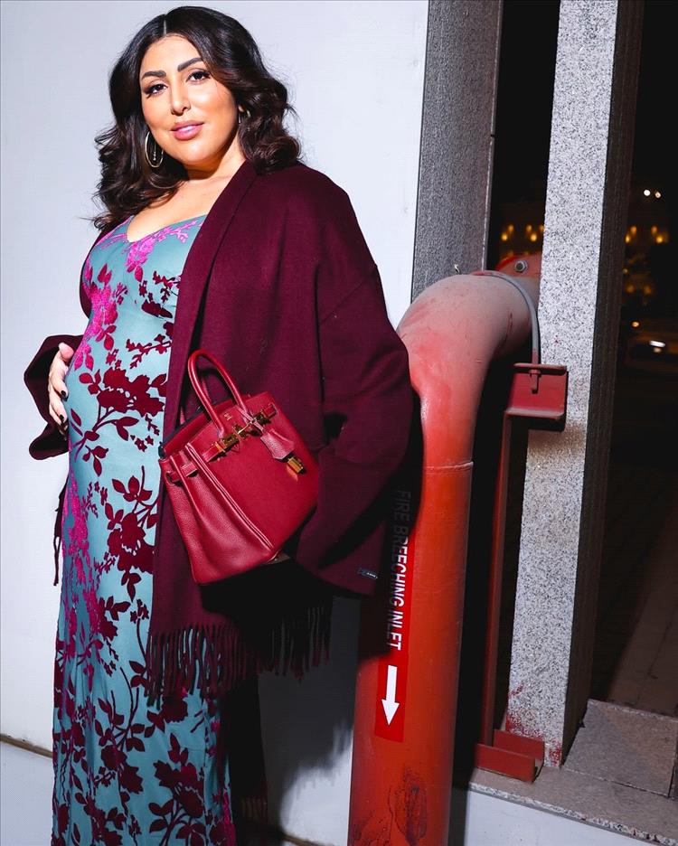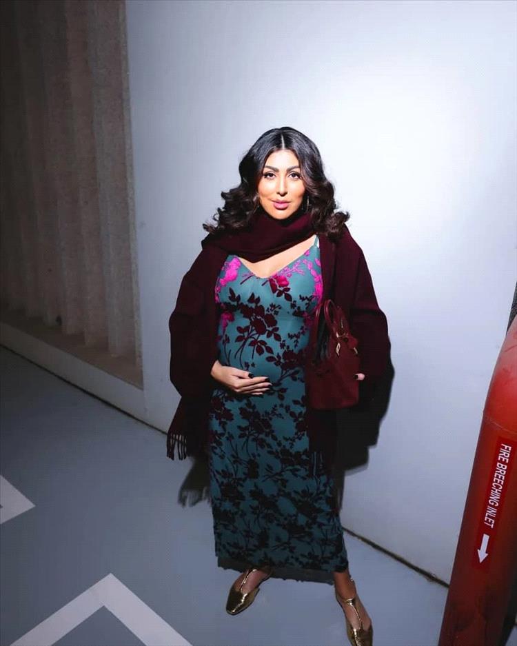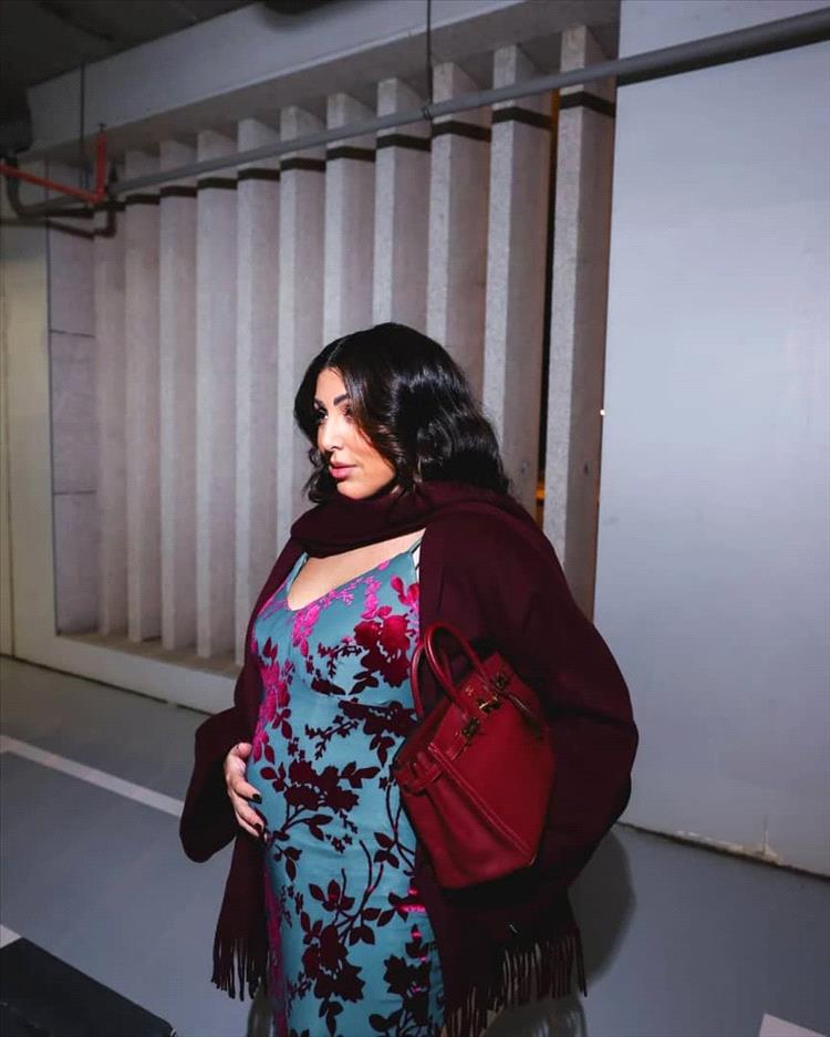 استعرضت الفاشينيستا الكويتية حملها بطفلها الثاني بفستان من الساتان باللون الازرق مع رسوم باللون البرغندي، وبدا عليها علامات الحمل واضحة في شهور متقدمة من الحمل، وارتدت فوق الفستان جاكيت من الصوف الخفيف باللون البرغندي وحملت حقيبة ناعمة بنفس اللون. وحرصت في اول ظهور لها واضح بالحمل على لمس بطنها بطريقة حنونة، بعد أشهر من العلاج لحمل طفلها الثاني.