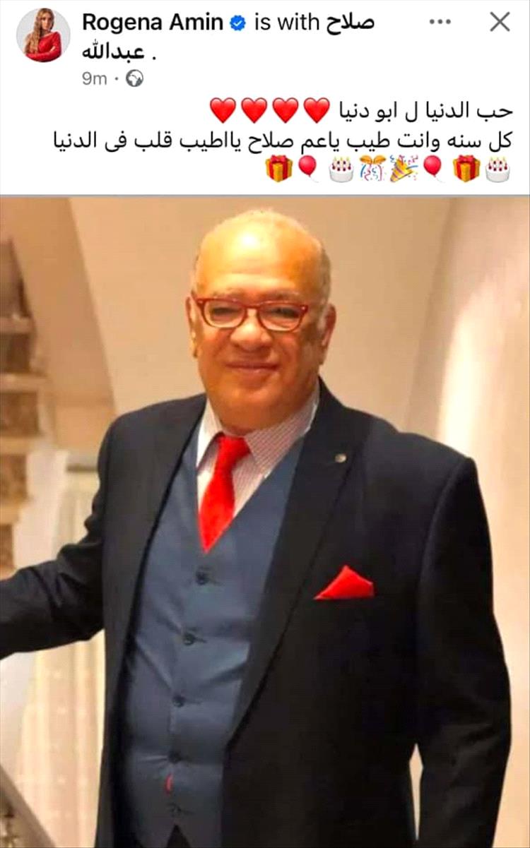 نشرت الفنانة روجينا عبر صفحتها الشخصية على موقع التواصل الاجتماعي "فيسبوك" صورة للفنان صلاح عبد الله هنأته من خلالها بعيد ميلاده.