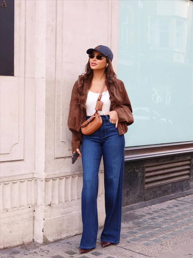 أما في لندن فقد اختارت نهى نبيل الأسلوب نفسه بحيث ارتدت الجينز مع توب بيضاء ضيّقة وفوقها جاكيت باللون البنّي "الكامل"من الجوخ الفخم بتصميم واسع وقصير، ونسّقت ملابسها مع بوط بنّي وحقيبة كروس أنيقة ووضعت قبّعة من الجينز بنفس الألوان، وهو ما أضاف لمسة عصرية الى طلّتها.