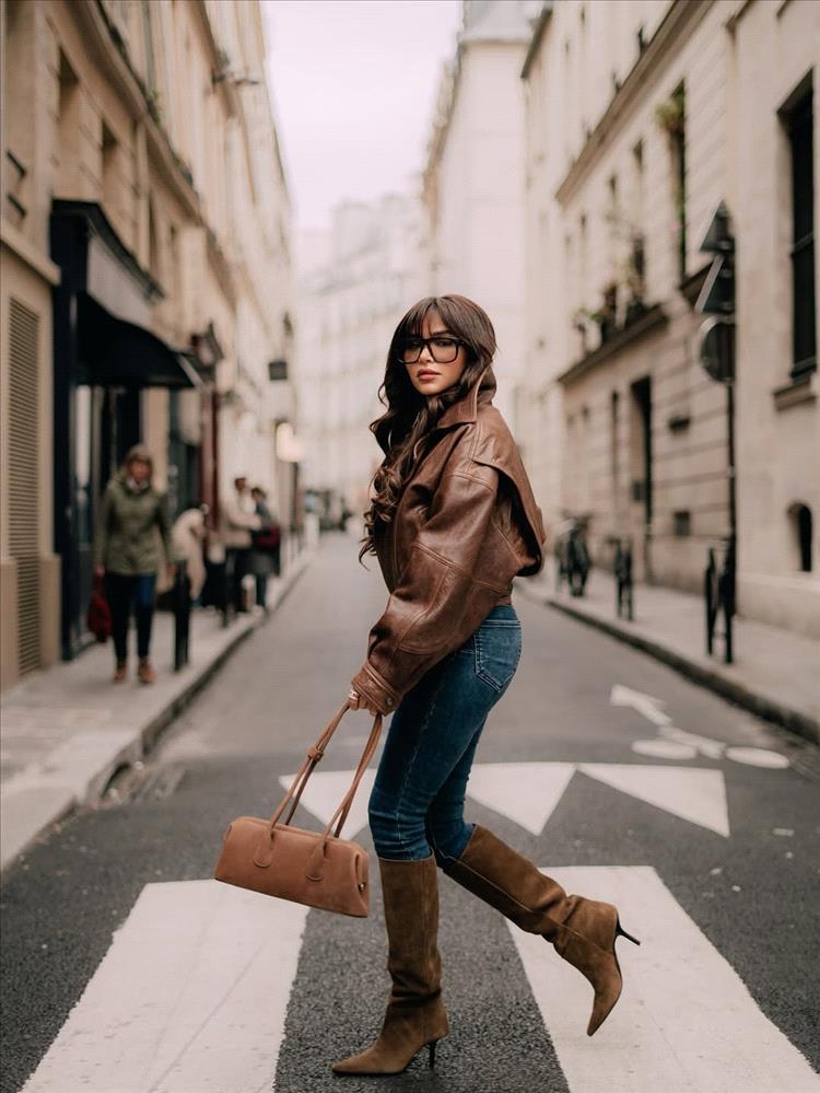 وفي أحدث ظهور لها في باريس، اختارت نهى نبيل أسلوب "الكاجوال" الأنيق وتألقت ببنطال من الدينم بقصة ضيقة مع توب بيج ناعمة، وارتدت معهما جاكيت قصيرة من الجلد بنّي اللون بتصميم مميز يجمع الفخامة والأنوثة، ونسّقت ملابسها بإكسسوارات مناسبة عبارة عن بوط طويل من المخمل باللون البنّي وحقيبة ناعمة من اللون نفسه، وتزيّنت ببعض المجوهرات الناعمة.