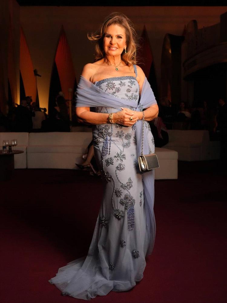 وأكملت درة طلّتها بمجوهرات ماسية فاخرة مرصّعة بحجر أزرق متناغم مع لون الفستان، فيما اعتمدت تسريحة شعر منسدلة بانسيابية ناعمة منحتها أناقة كلاسيكية تليق بجمالها الراقي وسحرها الأنثوي.
