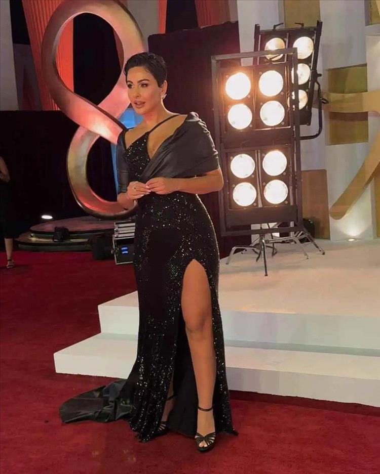 كالعادة، مايا دياب لا تكتفي بأن تمرّ مرور الكرام. إذ أطلّت بفستان ذهبي ضيّق شفّاف مزيّن بالخرز البرّاق من الجانبين، في تصميم عصري جريء أبرز قوامها. شعر مموج ومكياج برونزي أكملا هذه الإطلالة المبهرة على السجادة الحمراء.
