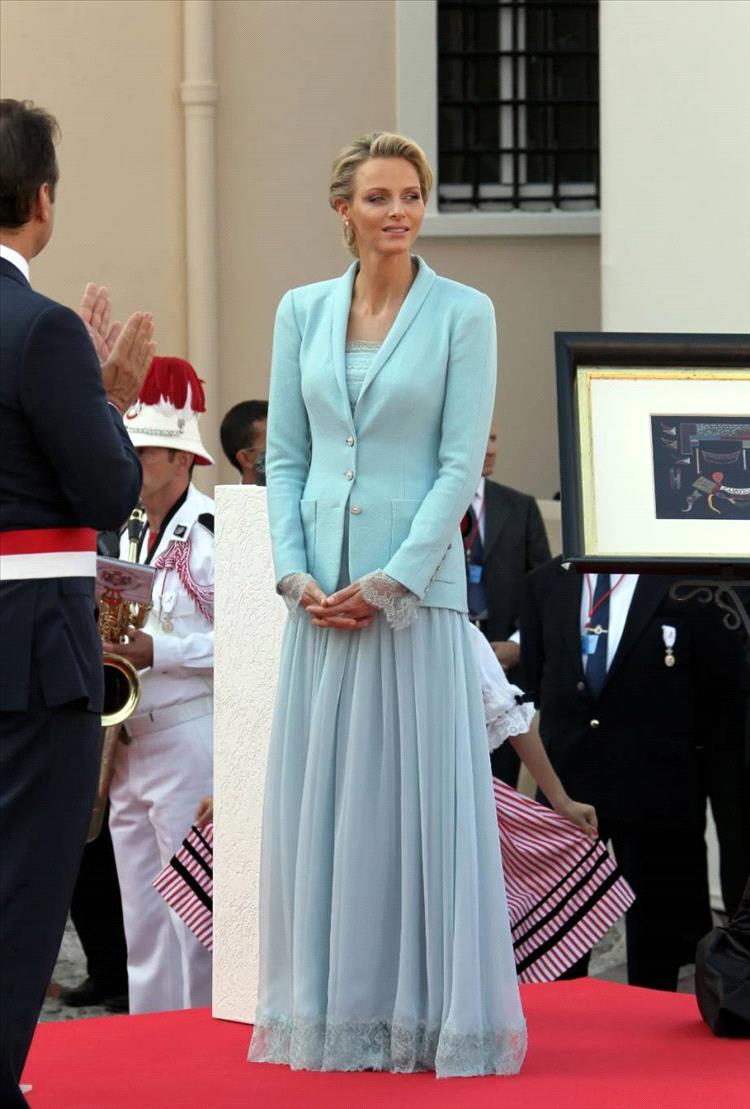 وتعاونت الأميرة شارلين، أميرة موناكو، مع كارل لاغرفيلد عن كثب قبل وفاته، في تصميم إطلالتها الزرقاء الرائعة في حفل زفافها الملكي على الأمير ألبرت عام 2011. وقالت: "إنه تعاون بيني وبين كارل لاغرفيلد. أردنا تصميمًا يناسب لون عينيّ. إنه من ابتكاري وأنا فخورة به".