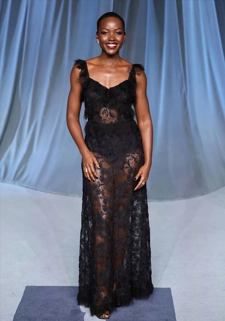 ظهرت النجمة لوبيتا نيونغو لأول مرة على السجادة الحمراء كسفيرة لـ"شانيل"، مرتديةً فستاناً أنيقاً من الدانتيل الأسود يشعّ بثقة هادئة وبأناقة ساحرة. وجاء بتصميم ناعم بحمّالات رفيعة مزيّنة بكشكش، مع قطع تشبه الملابس الداخلية سوداء وفوقها فستان من الدانتيل والشيفون بقصة ضيّقة من الأعلى وواسعة من الأسفل.