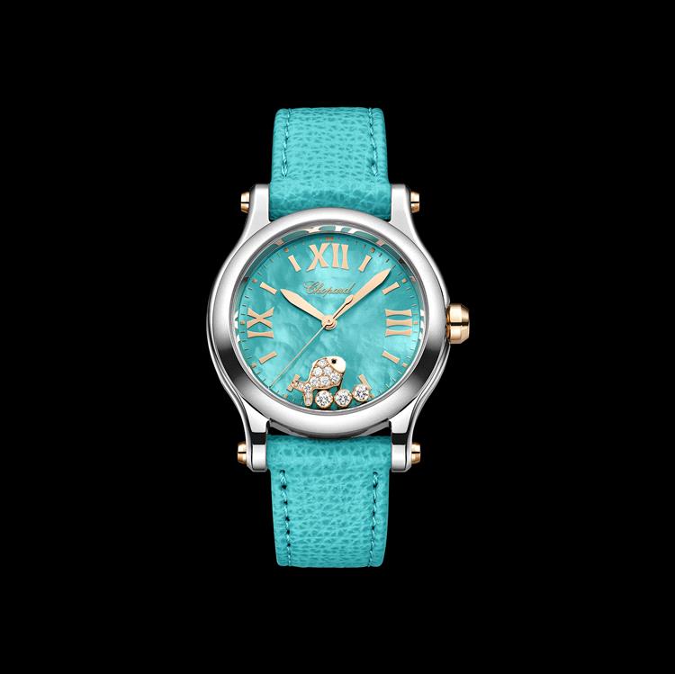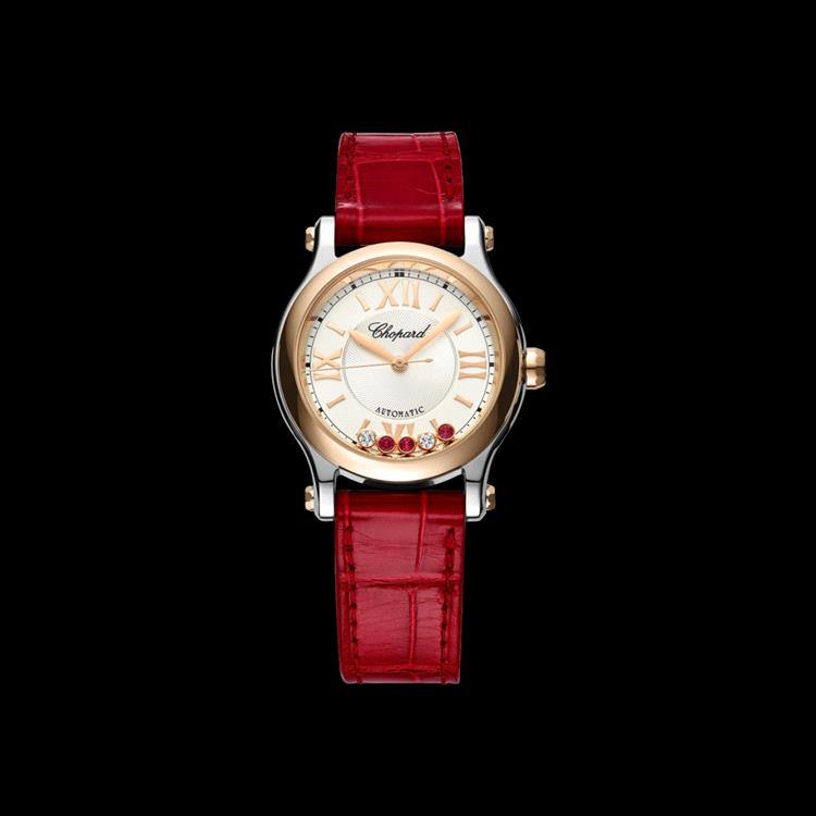من جهة أخرى، احرصي على ألاّ تُثقلي معصمك بالإكسسوارات عند ارتداء ساعة ملوّنة. ساعة واحدة كفيلة بأن تكون القطعة اللافتة، خاصة إذا كانت من طراز Happy Sport اللامع بالماس والعناصر المتحركة.