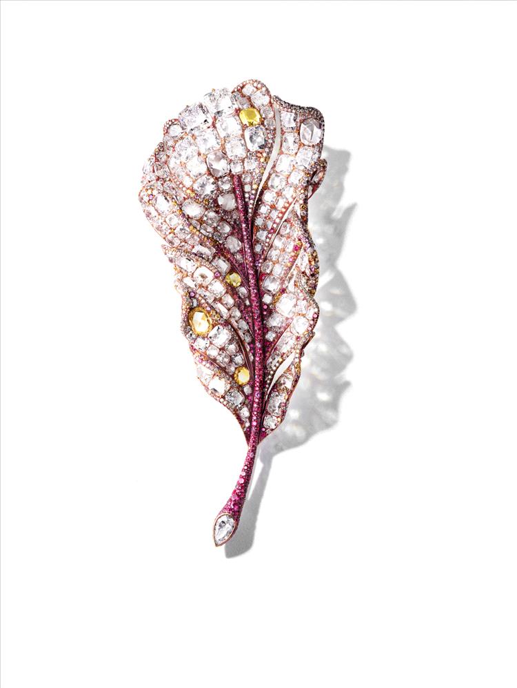 باستخدام مواد تُعدّ من الأصعب في العالم، مثل التيتانيوم والألماس، نسجت تشاو قصيدة عن الخفّة والبُعد البصري، حيث يبدو كل خيط في الريشة وكأنه يتمايل فعلاً في فضاء من الضوء والظل، مجسدةً رؤية شاعرية ومبتكَرة قلّ نظيرها في عالم المجوهرات.