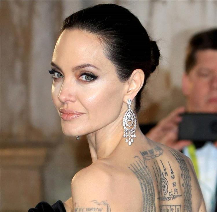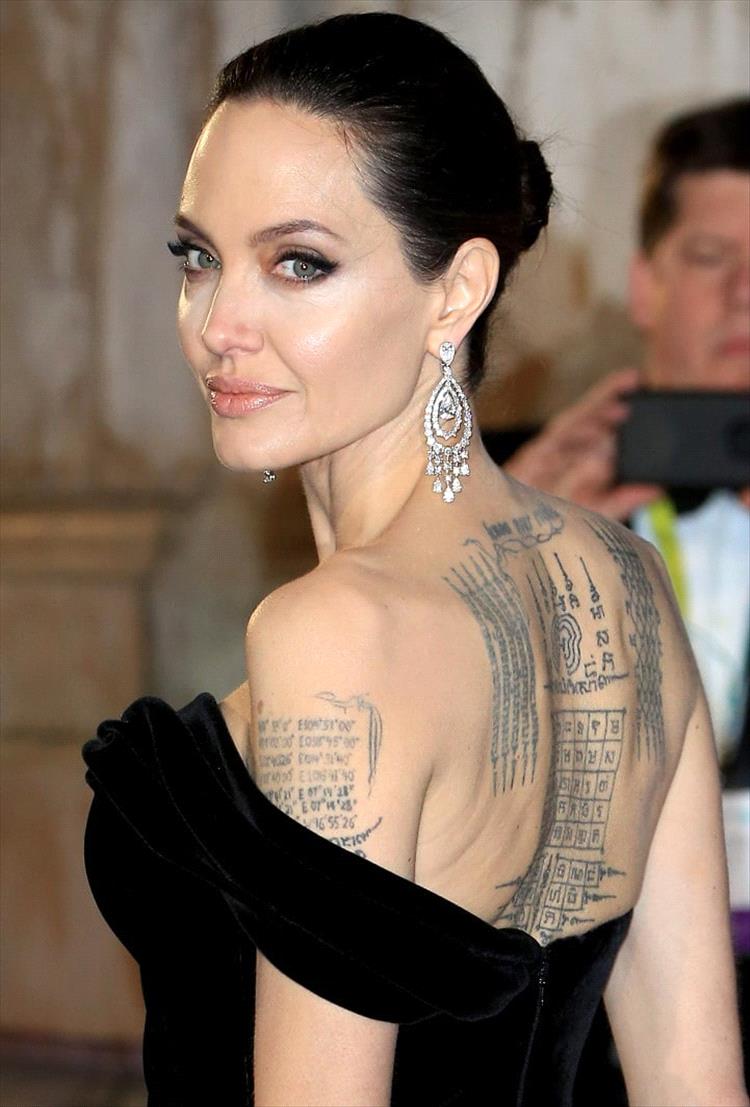 وأثارت إطلالة أنجيلينا جولي الراقية والناعمة ضجة كبيرة بسبب الوشوم الكثيرة التي ظهرت أسفل ظهرها، لا سيما أنها سبق وكشفت عن الرسوم التي اختارت وشمها على كتفيها ويديها وأعلى ظهرها، وانقسمت التعليقات بين من راق له هذا الأمر ومَن رأى فيه مبالغة سلبية.