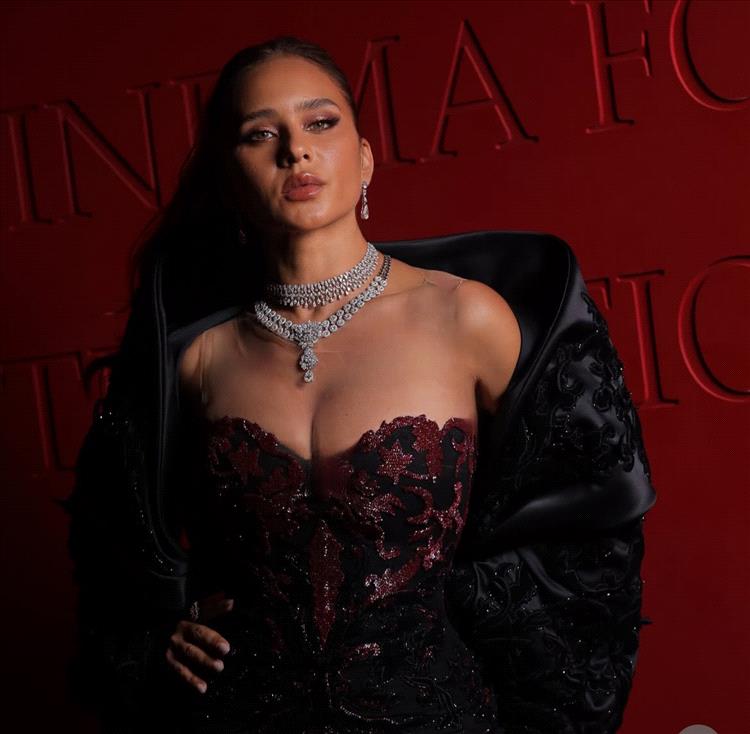 وأطلت النجمة نيللي كريم بفستان مميز مكوَّن من قطعتين باللونين الأسود والنبيتي، مكشوف الكتفين ومطرز بتفاصيل أنيقة أضفت عليه لمسة من الجاذبية، منسق مع رداء كبير الحجم من توقيع مصمم الأزياء اللبناني العالمي طوني ورد ومشاركة الستايلست إنجي المُر.