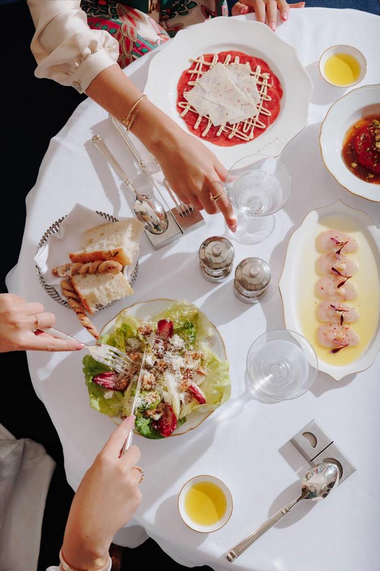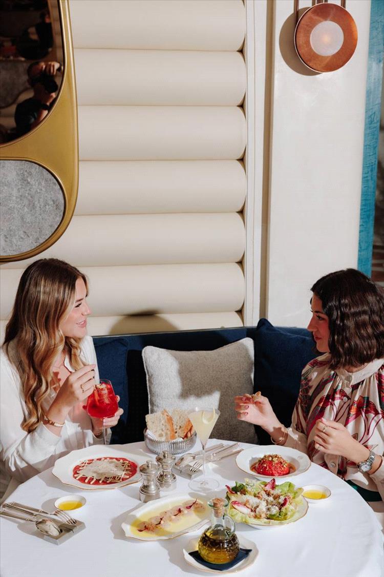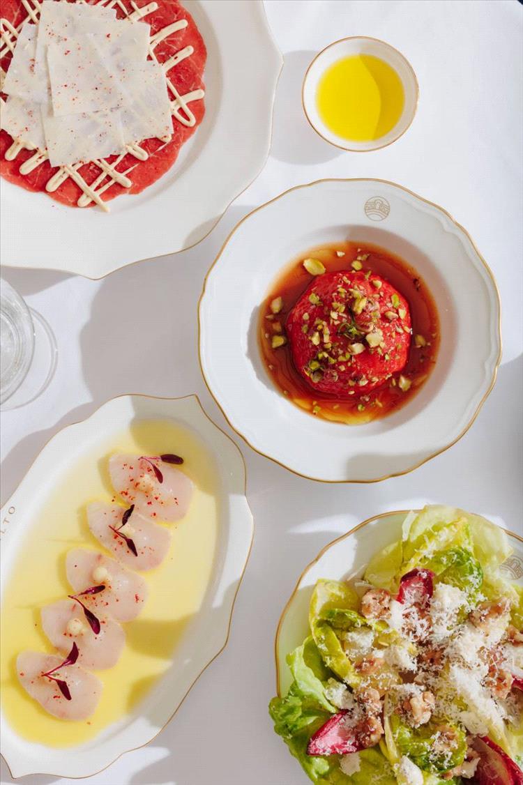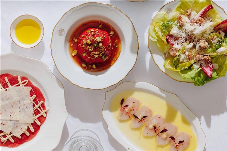 ويتسنى للضيوف اختيار أطباقهم المفضّلة من قائمة طعام مخصّصة، بدءاً من الأطباق الخفيفة والشهية مثل سلطة الكمثرى مع الجبن الأزرق والجوز، وصولاً إلى كرودو سمك الذيل الأصفر والبوراتا. وتضم القائمة تشكيلة من أصناف المقبّلات، بما فيها جنوتشي كاتشيو إي بيبي، وتروفيه أل بيستو المحضّر بجانب الطاولة، وسكالوبيني بالليمون المكوّن من شرائح لحم العجل الطرية والمنقوعة بصلصة الليمون الخفيفة والحامضة. وتكتمل التجربة مع باقة من الحلويات الإيطالية الشهية، مثل طبق تيراميسو الذي يتم تقديمه إلى جانب الجيلاتو الإيطالي المحضّر في المطعم والمتوافر بنكهات متنوعة.