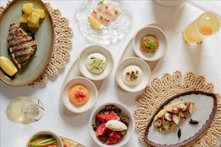 ويبدأ الضيوف وجباتهم بتناول المقبّلات والصلصات التقليدية المحضّرة في المطعم، بالإضافة إلى السلطات الطازجة والأطباق الشهية مثل الأخطبوط المشوي، قبل الانتقال إلى الأطباق الرئيسية التي تشتمل على المأكولات البحرية الطازجة واللحوم المشوية، مثل فيليه السمك وقطع لحم الضأن الطرية والمسقعة الكلاسيكية، والمُحضّرة بعناية فائقة لإبراز نكهاتها الأصيلة. وتكتمل التجربة مع توليفة من المشروبات والكوكتيلات المستوحاة من النكهات اليونانية، بما في ذلك التشكيلة الحصرية
