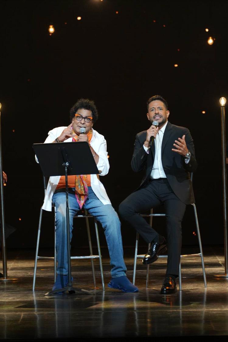 وقدّمت الفنانة إسعاد يونس فقرات الحفل بأسلوبها المرح المميز، فبدأت ممازحة الحضور قائلة: "معلش مجبتش البيجامة الكستور المكوجي ضرب عليها، متأسفة جدًّا".