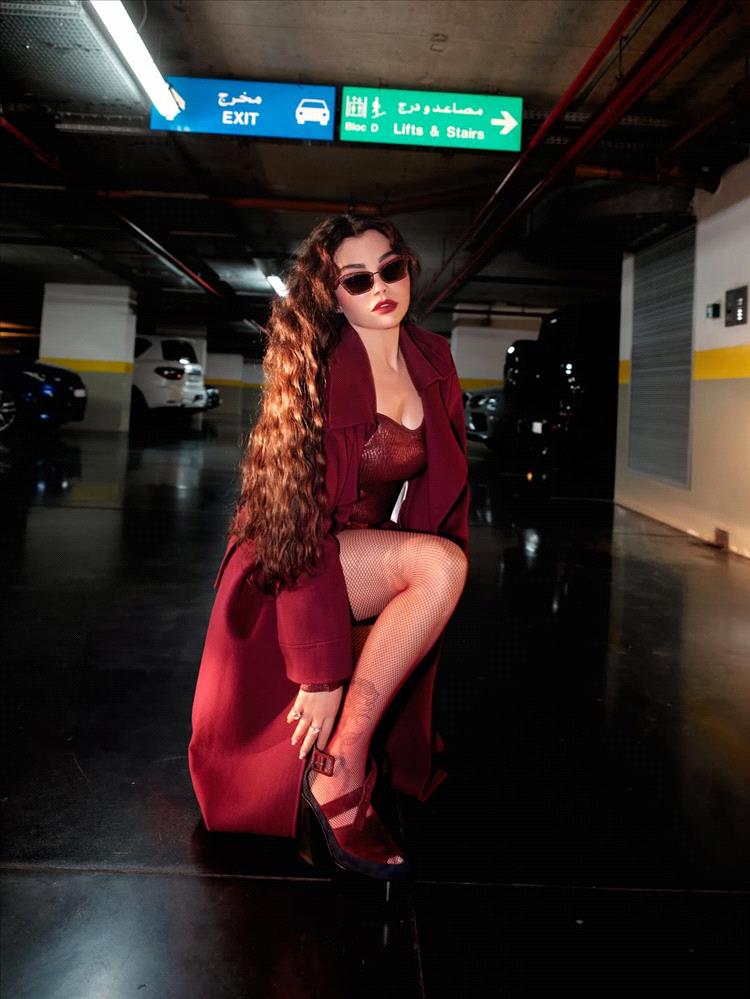 ومن الناحية الجمالية، تركت هيفاء وهبي شعرها الطويل ينسدل بشكله الطبيعي بلمسات من الكيرلي، وطبّقت مكياجاً قوياً مع أحمر شفاه باللون الأحمر الفاقع، وغطّت عينيها بنظّارات شمسية بإطار أحمر اللون أيضاً.