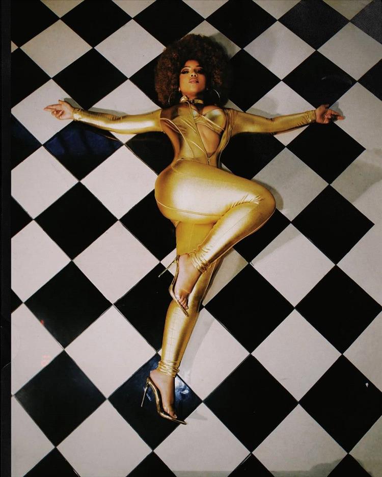 على الجانب الآخر من احتفالات الهالوين، تألقت كلوي بيلي بإطلالة رائعة تكريمًا لبيونسيه. بدت وكأنها نسخة طبق الأصل من النجمة في فستان ضيق يبرز منحنيات الجسم، والذي بقي مفتوحًا ليكشف عن حمالة صدر ذهبية لامعة. حتى شعرها الأفرو الكثيف بدا وكأنه مأخوذ مباشرةً من فيلم "أوستن باورز" عام 1997.
