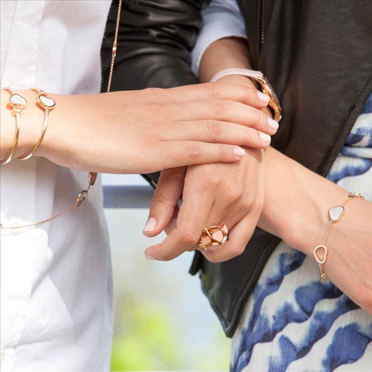 كذلك يسمح تصميم القلوب الرقيقة والناعمة في تكديس الأساور مع القلوب الملوّنة، وهو ما يؤكد على إبداعات "شوبارد" الخفيفة والمبهجة بألوانها وبترصيعها بحبّات الألماس، فتبدو كلوحة فنية مميزة، عند تنسيقها مع الملابس العملية البسيطة أو الرسمية الأنيقة.