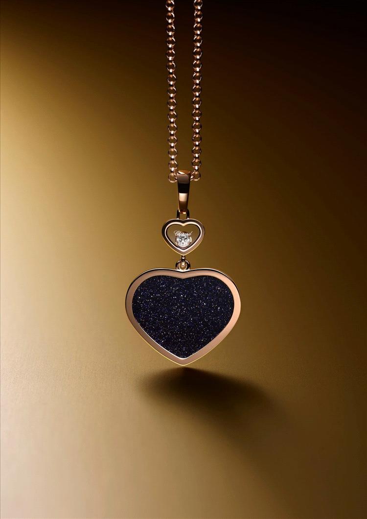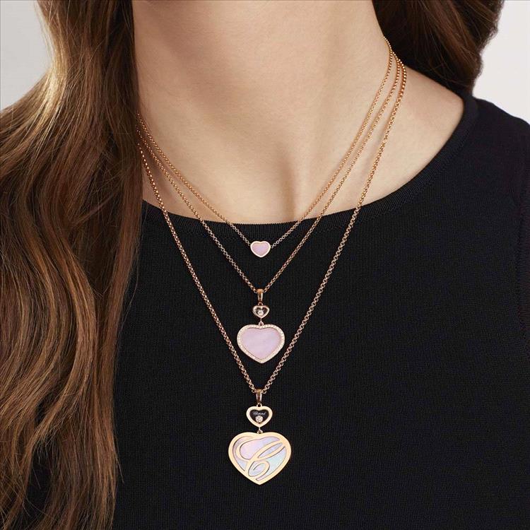 وتعتبر مجموعة (Happy Hearts) مثالاً حقيقياً على إبداع chopard في التجديد والابتكار، وتعتبر قلائد القلوب من القطع المهمة هذا الموسم، وهي من أجمل الهدايا التي يمكن تبادلها خلال أعياد نهاية العام وتنسيقها بأسلوب وصيحة الألوان المكدّسة والتي تقوم على ارتداء سلاسل مختلفة الطول بتدرج ناعم من القلوب المصنوعة من أحجار الملكيت أو عرق اللؤلؤ أو العقيق.