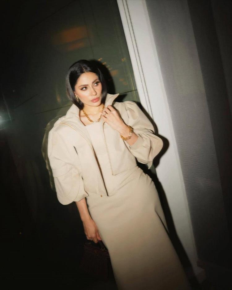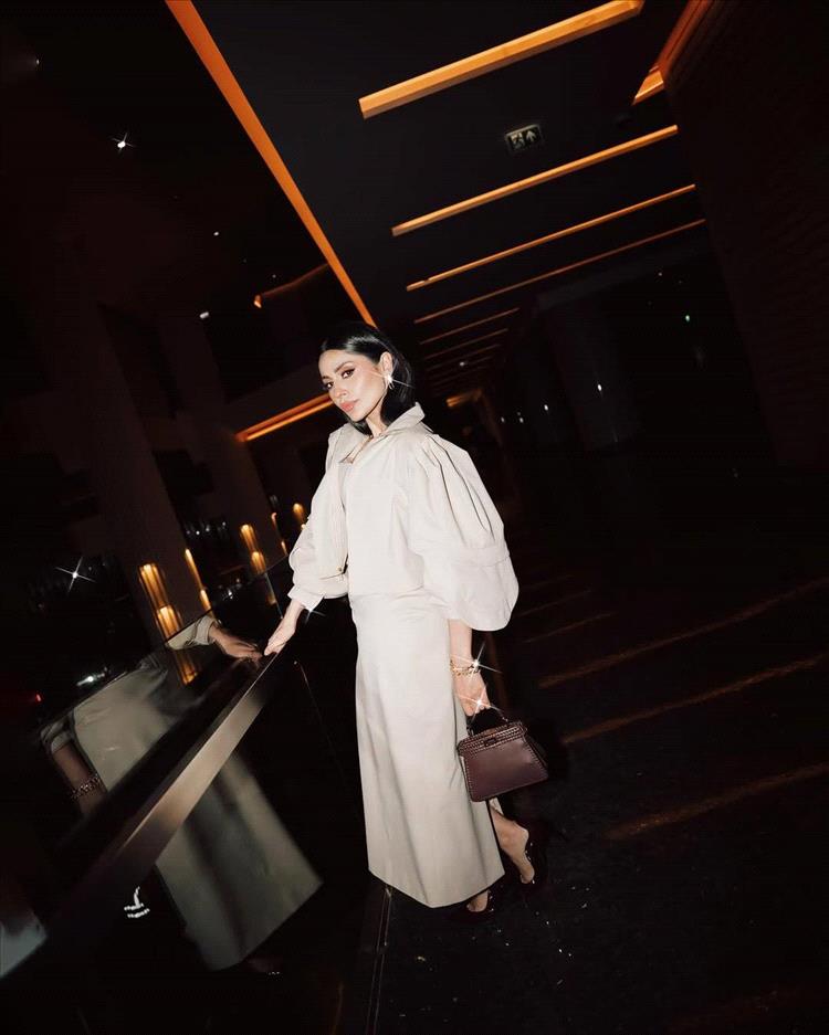 أما النجمة السعودية إلهام علي فقد اختارت أن تعبّر عن أسلوبها المميّز في الأناقة من خلال إطلالة تجمع بين الراحة والترف. ظهرت بفستان باللون البيج الناعم نسّقته مع جاكيت Bomber منفوخة من نفس اللون من علامة "كارولين لانغ"، في توليفة تجمع بين روح الشباب وفخامة التفاصيل. أضافت إلهام لمستها الخاصة باختيار مجوهرات ذهبية ناعمة من "تيفاني أند كو"، التي أكملت الإطلالة بدون مبالغة، لتجسّد مفهوم الترف البسيط الذي يواكب أحدث اتجاهات الموضة العالمية.