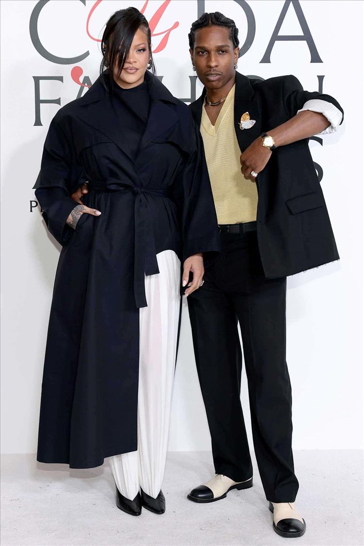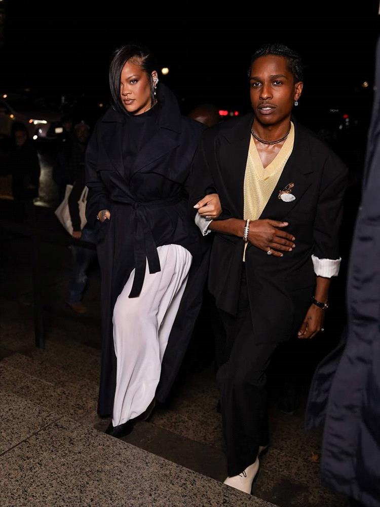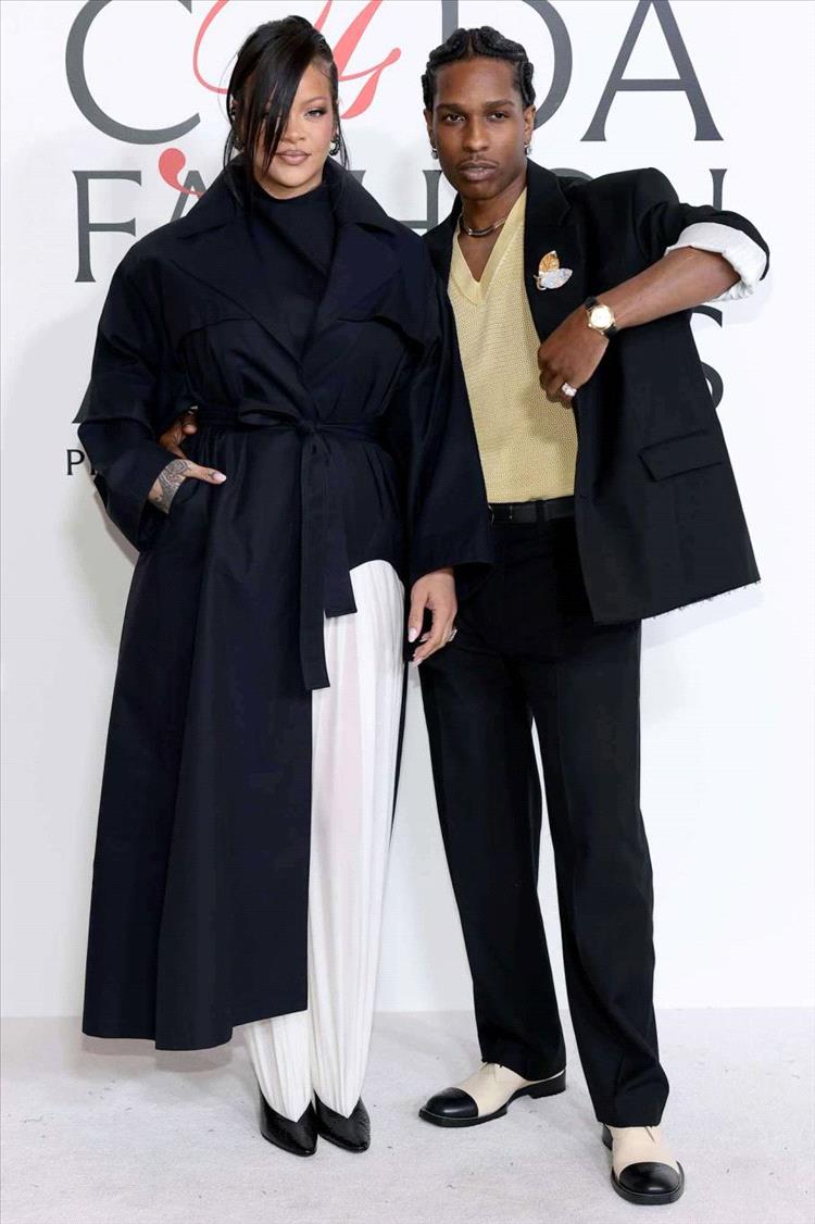 وكعادتها، تألقت ريهانا بأجمل إطلالاتها على السجادة الحمراء لهذه المناسبة. وصل الثنائي الأكثر تأثيراً في عالم الموضة وهما يرتديان تصميمين مستوحيين من البدلة الرسمية التقليدية، متناسقين كالعادة.