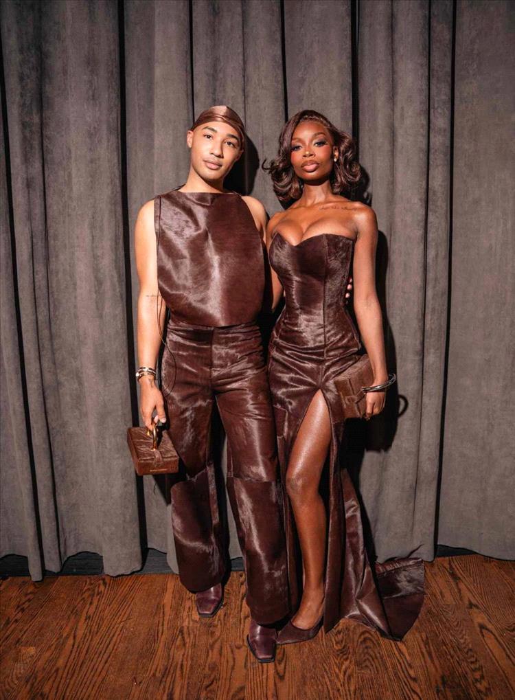 وأضافت: "كنتُ أرغب بشدة في تقديم إطلالة راقية ومميزة، تعكس أسلوب براندون بلاكوود الأصيل. هذه إطلالة مصمّمة خصيصاً، وكانت ثمرة تعاون بيني وبين براندون ومصمّمي الأزياء الخاصّين بي، ماثيو وريجينالد رايسمان. ماثيو وريجينالد هما مصدر إلهامي الحقيقي، وقد ساعداني في كل خطوة من خطوات العملية الإبداعية من البداية إلى النهاية".