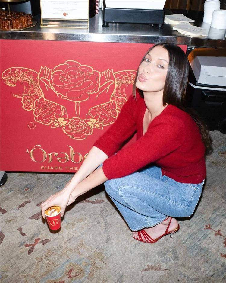 وحرصت عارضة الازياء العالمية على مشاركة متابعيها على انستغرام برحلتها الترويجية لعطرها في الكويت وتواجد معها والدها محمد حديد، وأرفقت الصور بتعليق كتبت فيه: "أجمل أسبوع على الإطلاق! إطلاق Orebella في الشرق الأوسط والاحتفال بعيد ميلاد والدي في الوقت نفسه".