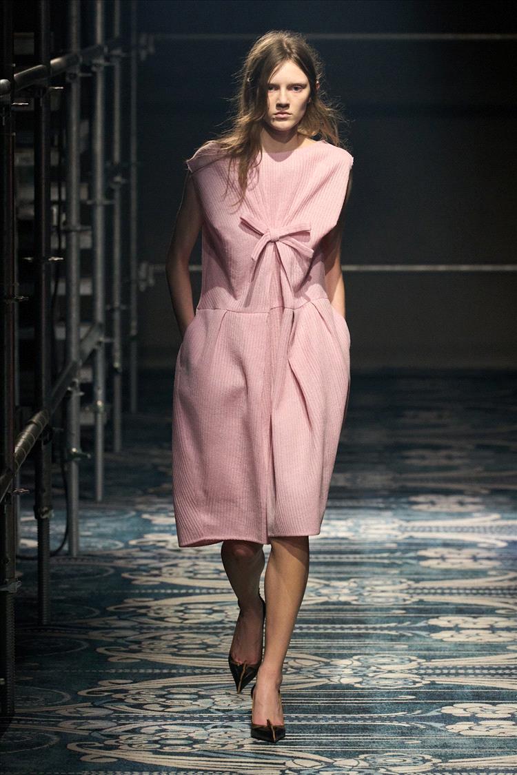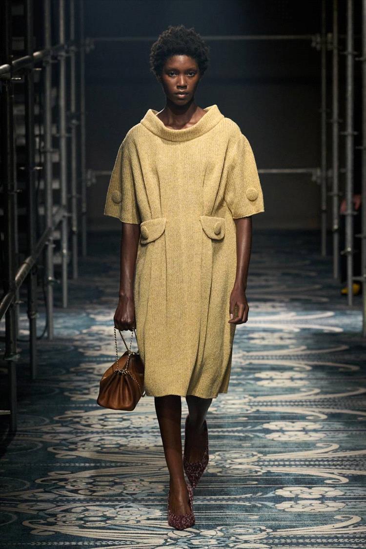 في عروض "برادا" لخريف وشتاء 2025 – 2026، برزت الألوان الباستيلية في مجموعة من التصاميم التي تجمع بين الأنوثة الكلاسيكية والحداثة. رأينا المعاطف الطويلة بدرجات الوردي الباهت، الفساتين الصوفية باللون الأزرق السماوي، والتنانير الحريرية بدرجات الأخضر النعناعي. ما يميز "برادا" هذا الموسم هو قدرتها على دمج هذه الألوان الناعمة في تصاميم ذات طابع قوي وهيكلي، لتؤكد أن الرقّة لا تعني الضعف، بل يمكن أن تكون عنواناً للأناقة المعاصرة.