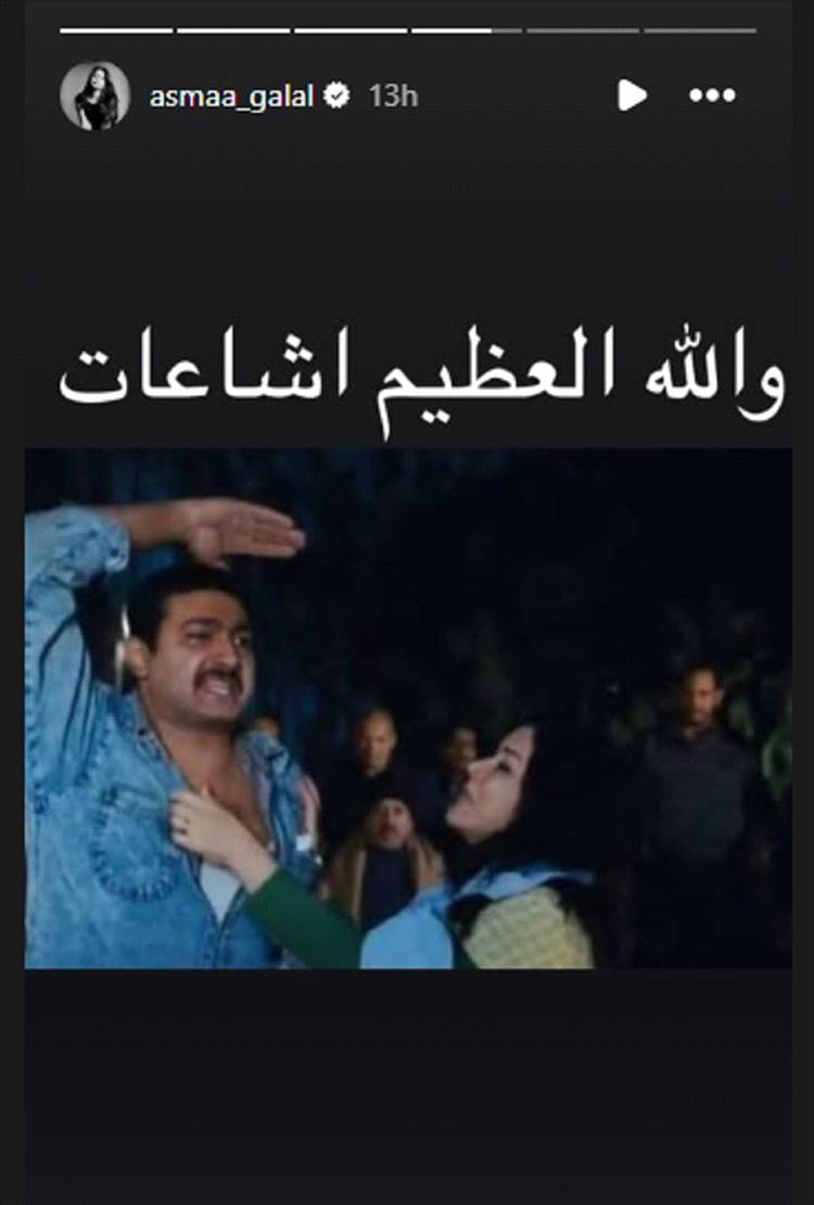ونفت أسماء جلال تلك الشائعات بأسلوب طريف، من طريق كوميك من فيلم "الفرح"، حيث نشرت عبر خاصية القصص المصوّرة الملحقة بحسابها الخاص في "إنستغرام" صورة للفنان ياسر جلال والفنانة جومانا مراد من الفيلم مع التعليق: "والله العظيم إشاعات".