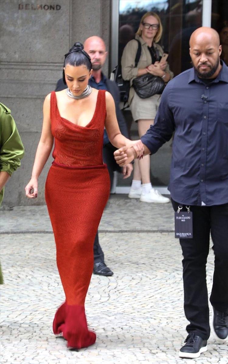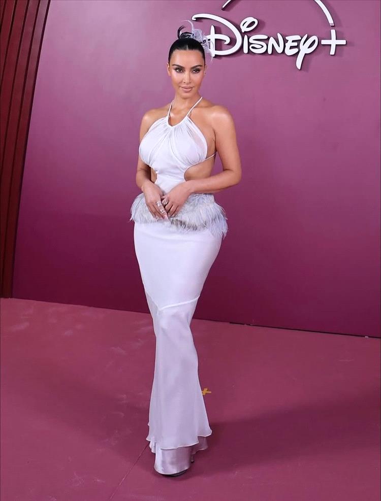 وأخيراً، أصبحت هذه الأم لأربعة أطفال تفضّل الفساتين شبه الشفّافة مكشوفة الظهر. في اليوم السابق، على السجادة الحمراء لمسلسلها الجديد "كل شيء في محله" على هولو في ريو دي جانيرو، تألّقت كيم بفستان من الحرير الكريب والساتان والشيفون من تصميم كونر آيفز. تميز الفستان بفُتحة رقبة متقاطعة، وظهر مفتوح، وفُتحات عند الخصر، وصدرية شبه شفّافة، وتفاصيل من الريش عند الوركين، وتنورة متعددة الطبقات.