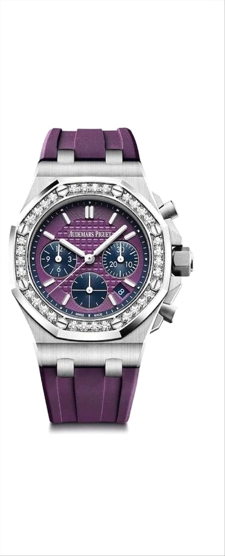 تُعرف دينا الشربيني بخياراتها الجريئة وبأسلوبها الذي يميل إلى العصرية البعيدة عن النمطية. وقد جاء اختيارها لساعة Royal Oak Offshore ليعكس ذوقها المتجدّد. الساعة بقياس 37 مم وبحركة ذاتية التعبئة، تتميز بهيكل مصنوع من الستانلس ستيل، ما يمنحها طابعاً عملياً وقوياً، بينما يكتمل الترف في إطار مرصّع بالألماس. وتبرز لمسة التفرّد في المينا البنفسجي الذي يعدّ من الألوان النادرة في عالم الساعات، والممزوج بعلامات ساعة من الذهب الأبيض مع طلاء مضيء يمنح القراءة سهولة وأناقة. أما السوار المطاطي باللون البنفسجي فيضفي على الساعة روحاً رياضية نابضة بالحياة. تعمل الساعة باحتياطي طاقة يبلغ 40 ساعة، ما يجعلها مثالاً للأناقة العملية.