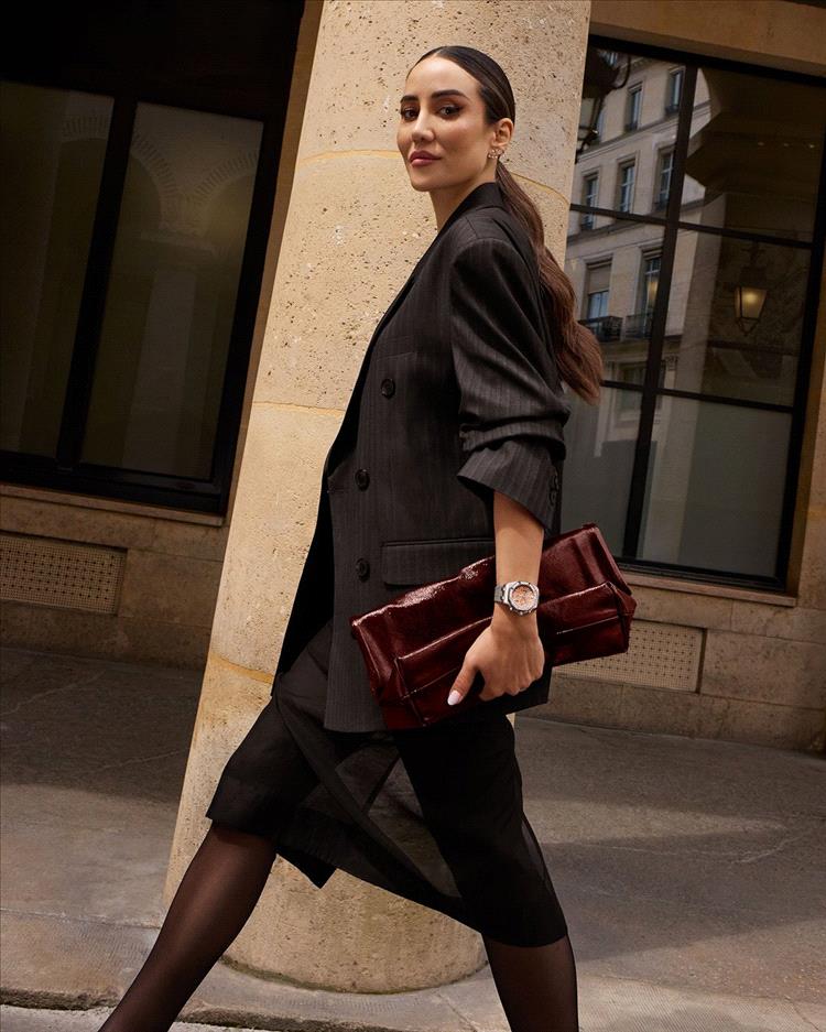 تمارا كالينيتش، العارضة ومؤثّرة الموضة البوسنية، تتميز بأسلوب يمزج بين الكلاسيكية والحداثة. هذه القدرة على الجمع بين التراث والابتكار تعكس فلسفة "أودمار بيغيه" Audemars Piguet في تصميم ساعاتها.