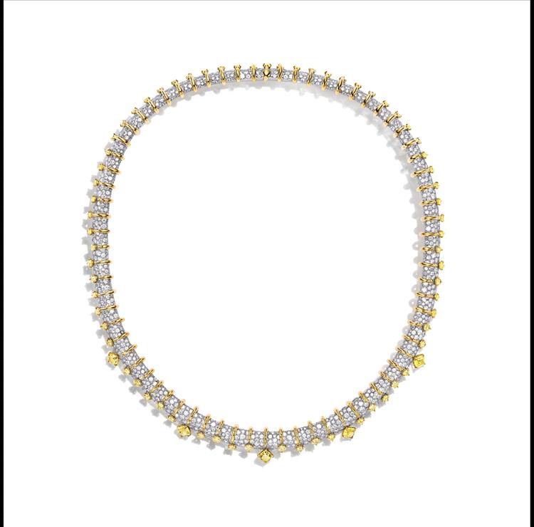 وتشمل التعبيرات المشرقة عن اللون والإبداع قلادة وسوار "أبولو فانسي إنتِنس ييلو دايموند" Apollo Fancy Intense Yellow Diamond ، حيث يلتقي البلاتينوم مع الذهب الأصفر عيار 18 قيراطاً بألماس أصفر نادر، إلى جانب مجوهرات "بيرد أون أ روك" و"بيرد أون أ بيرل" التي تجسّد خيال تيفاني اللامحدود وفنّها. ويكشف المعرض أيضاً عن إبداعات نادرة من مجموعة جان شلومبرجيه من "تيفاني"، تتضمّن عقود لآلئ طبيعية من مياه مالحة من منطقة الخليج، وروائع مرصّعة بالفيروز، وتصاميم مينا متقنة تحتفي بإرث الدار في الجرأة الإبداعية والحِرفية العالية.