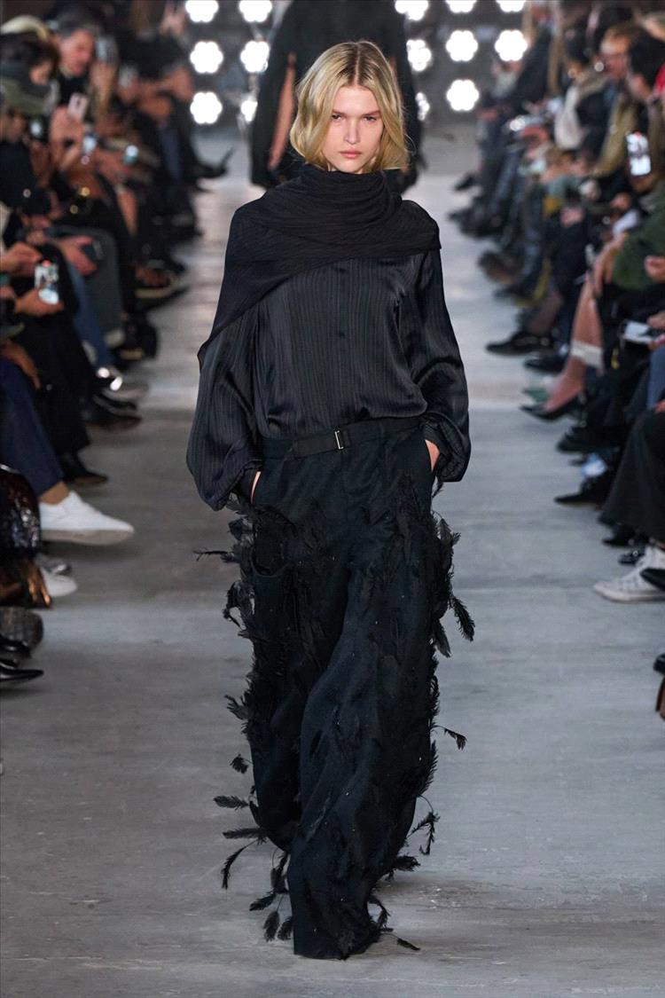 بلوزة بسيطة مزيّنة بالريش عند الأكتاف أو التنورة ذات الريش المتدرّج تمنحك حضوراً قوياً دون الحاجة إلى كثير من الإكسسوارات.
