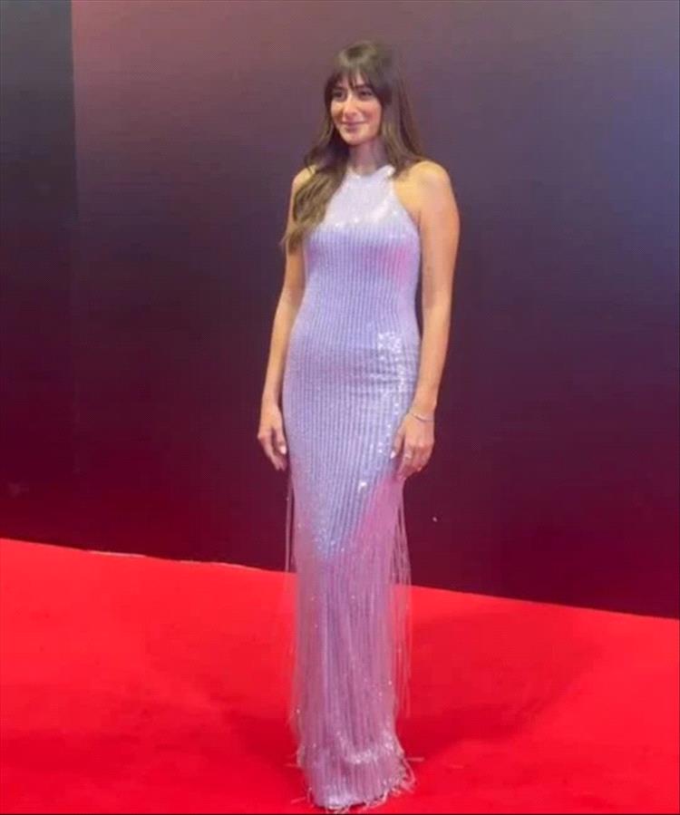 أطلّت غادة عبد الرازق بفستان فضّي ضيّق لامع منحها حضوراً لافتاً وجاذبية خاصة، واعتمدت فوقه كاب طويلاً من القماش نفسه، إلا أن الجهة الداخلية جاءت من قماش أسود بارز، ما زاد الإطلالة عمقاً وقوة وهيبة. هذه الإطلالة جمعت بين الأناقة الكلاسيكية والنفحة الدرامية المميزة التي تتقنها غادة.