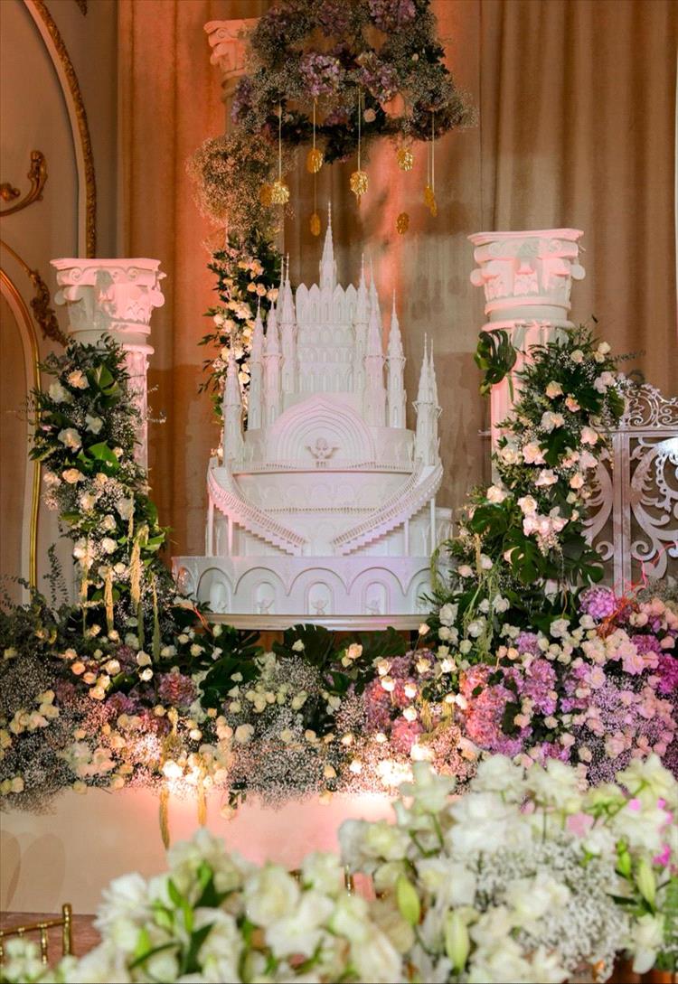 ومن بين مفاجآت السهرة، قدّم آدم عفارة ما وُصف بـ "أكبر كيكة زفاف" في العراق، بتصميم قصر ملكي فاخر بقطر 180 سم وارتفاع 3 أمتار، زيّنته الورود الطبيعية والملائكة والسلالم الحلزونية، ليشكّل محوراً بصرياً مبهراً في قلب القاعة.