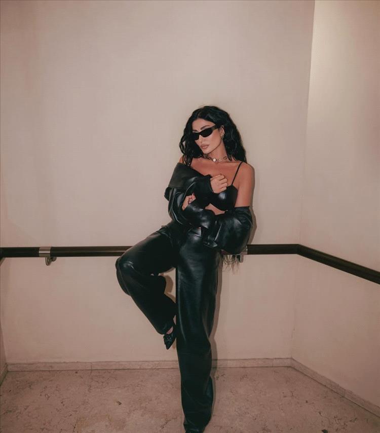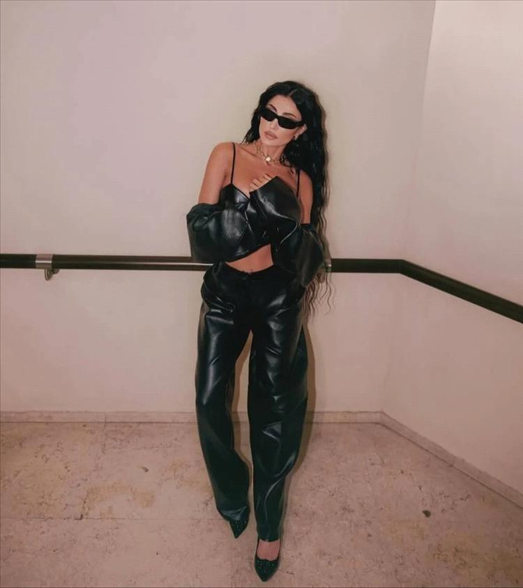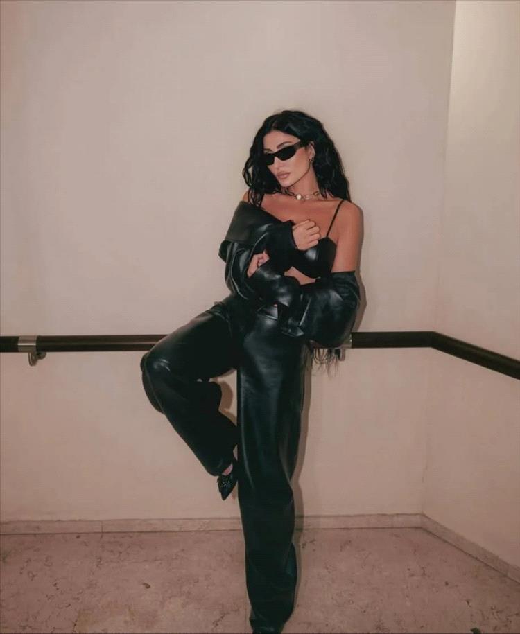 نسّقت النجمة "البراليت" مع جاكيت جلدي قصير أضاف لمسة حادة ومثالية الى هذا النوع من الإطلالات. أما البنطلون واسع القصّة والمصنوع أيضاً من الجلد الأسود، فقد منح الإطلالة بعداً عصرياً متوازناً يدمج بين الجرأة والراحة.