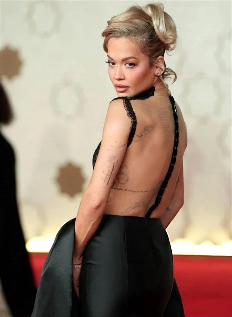 واختارت ريتا أورا اللون الأسود على غرار نجمات عالميات أخريات، مثل آنا دي أرماس التي ارتدت فستاناً من تصميم "لويس فويتون" Louis Vuitton، مصنوعاً من الحرير الأسود الكريب بقصّة حورية البحر، وداكوتا جونسون التي تألقت بإطلالة أنيقة وبسيطة وأحادية اللون عكس فستان دي أرماس المطرّز بنفحات فضّية نارية.