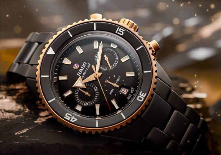 - شعارا Rado وAutomatic مطبوعان بلون الذهب الوردي