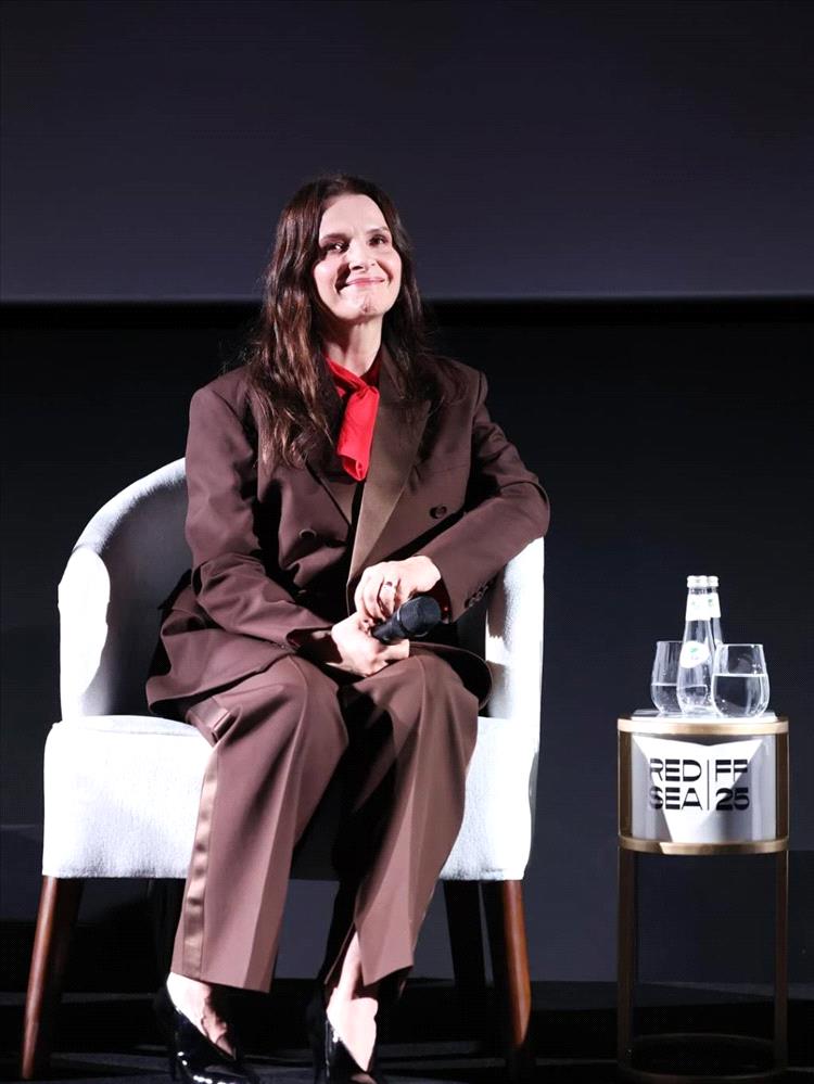 جولييت بينوش… لمسة فنية بوشاح أحمر
