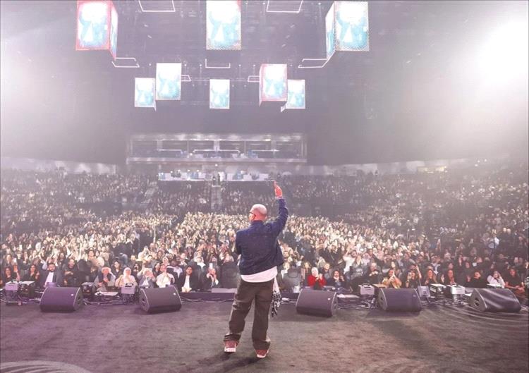 وصعد الهضبة إلى المسرح وسط صيحات الجمهور، مقدمًا واحدة من أقوى حفلاته هذا العام، بمستوى بصري وصوتي غير مسبوق على أنغام أغنيته "يا أنا يا لأ".