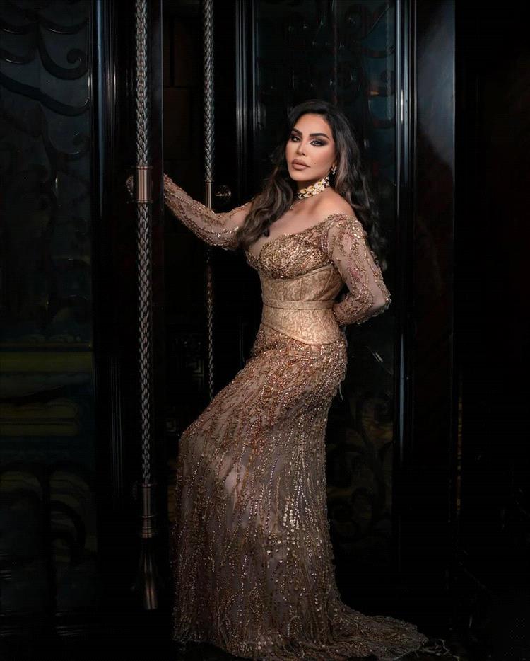 واختارت الفنانة الإماراتية لإحياء حفل زفاف أخيراً، فستاناً رائعاً باللون الذهبي بأسلوب ضيق، تميّز بقصة كورسيه على الخصر وتفاصيل تعكس أجواء احتفالية.