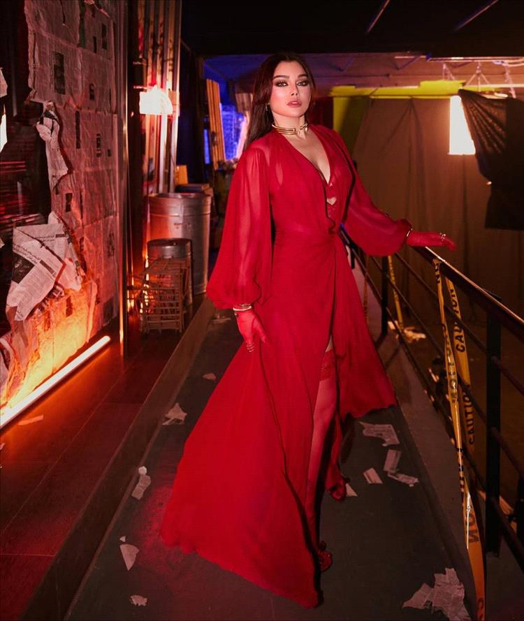 جاء هذا "اللوك" ليعكس جرأة هيفاء المعهودة وحبّها للإطلالات التي تبرز أنوثتها الجذّابة. التناغم بين القصّات، الأقمشة واللون الواحد جعل الإطلالة متكاملة، وكرّس اللون الأحمر خياراً مثالياً للاحتفال والتألق.