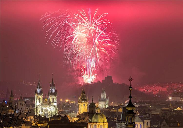 تحتفل براغ بحماسة ليلة 31 كانون الأول (ديسمبر)، بينما يشهد اليوم الأول من العام عرضاً للألعاب النارية في السادسة مساءً.